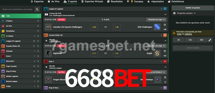 O 6688bet oferece uma grande seleção de opções de apostas em e-sports com probabilidades competitivas